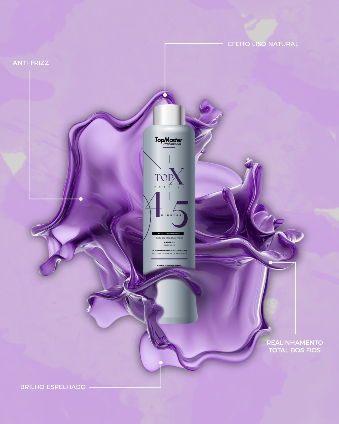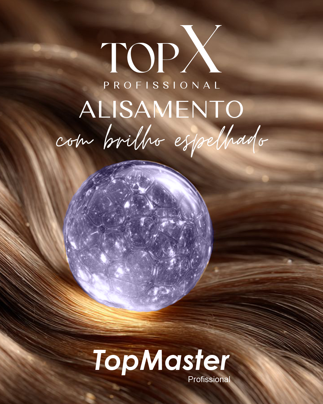Top X Premium Progressiva é um procedimento de realinhamento térmico, promove a selagem das cutículas capilares e alinha as fibras. Efeito anti-frizz, suaviza e dá brilho espelhado.